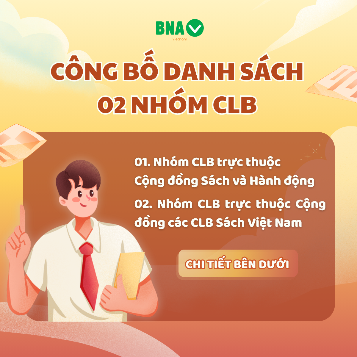 Sau hơn 12 năm đồng hành và phát triển cùng học sinh, sinh viên trên khắp cả nước, Dự án Sách và Hành động – BNA Vietnam ngày càng mở rộng về quy mô, đa dạng về hình thức tổ chức và phong phú trong cách tiếp cận cộng đồng. Nhằm đáp ứng định hướng phát triển mới theo hướng linh hoạt, sâu sát và lan tỏa văn hóa đọc hiệu quả hơn, Dự án hình thành hai nhóm Câu lạc bộ cộng đồng.