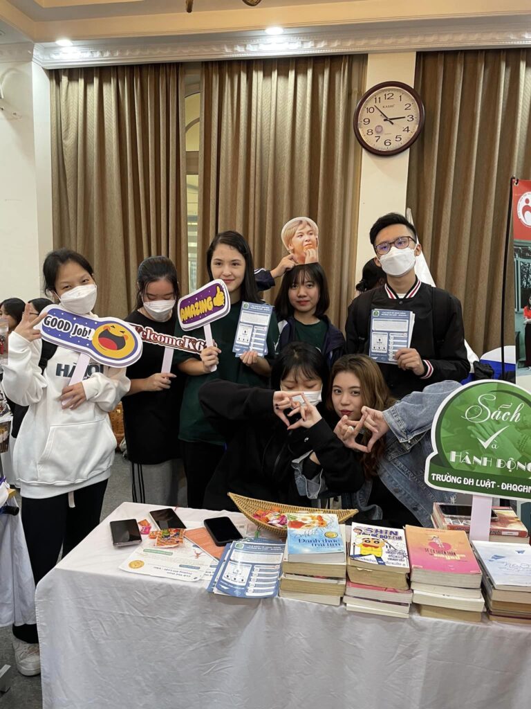 CLB Sách và Hành động Trường ĐH Luật- ĐHQGHN là CLB trực thuộc Trường ĐH Luật – ĐHQGHN và hoạt động dưới sự bảo trợ của Dự án Sách và Hành động. CLB thành lập năm 2018 với sứ mệnh “kiến tạo”, “phát triển” và “lan tỏa” văn hóa đọc tới các bạn trẻ trong và ngoài trường. Với nhiều hoạt động như đêm sách, ngày sách, chiến dịch gây quỹ,… CLB là môi trường để phát triển, loa tỏa niềm đam mê đọc và đặc biệt là ngôi nhà chung sự ấm áp trong những năm tháng đại học.