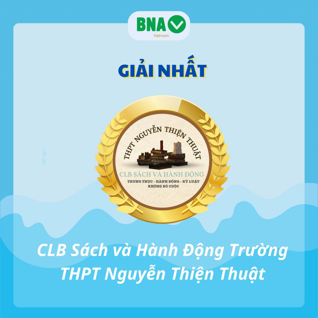 1. Giải Nhất: CLB Sách và Hành Động Trường THPT Nguyễn Thiện Thuật (Phần thưởng: 15 cuốn sách + 01 Giấy chứng nhận)