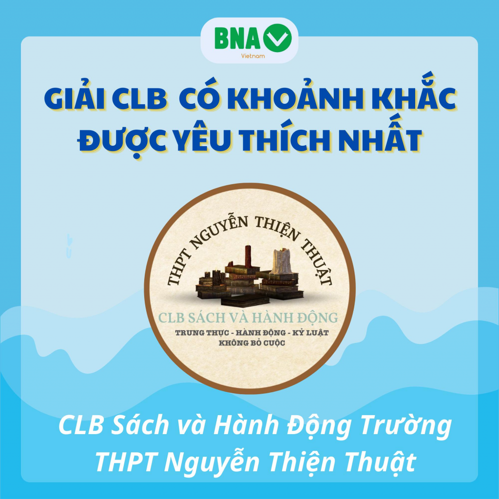 4. Giải “CLB có khoảnh khắc đẹp nhất”: CLB Sách và Hành Động Trường THPT Nguyễn Thiện Thuật (Phần thưởng: 3 cuốn sách + 01 Giấy chứng nhận)