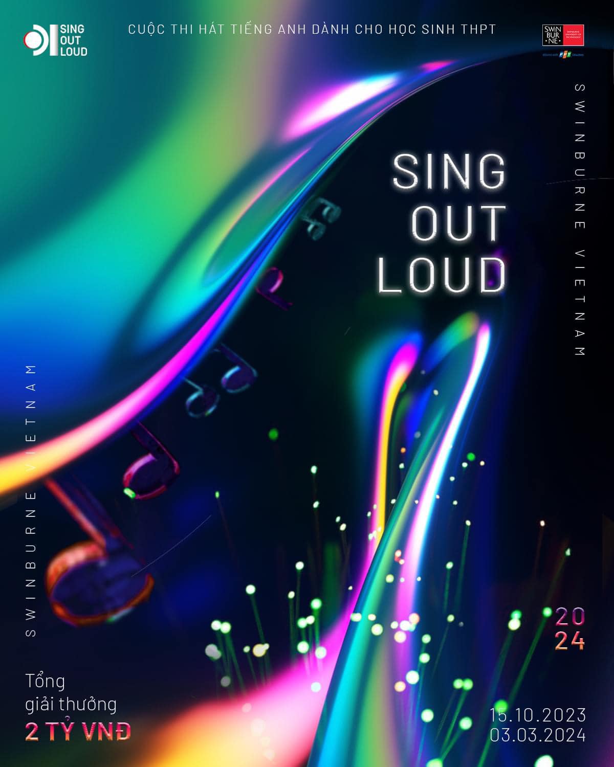 “Sing Out Loud” là một trong những cuộc thi hát Tiếng Anh dành cho học sinh THPT lớn nhất cả Nước. Sau thành công của hai mùa với gần 700 đơn đăng ký khắp cả nước, “Sing Out Loud” – cuộc thi hát tiếng Anh dành cho học sinh THPT do sinh viên Swinburne Việt Nam tổ chức, đã chính thức quay trở lại và lợi hại hơn xưa. Tổng giải thưởng cuộc thi năm nay lên đến 2 tỷ VNĐ.